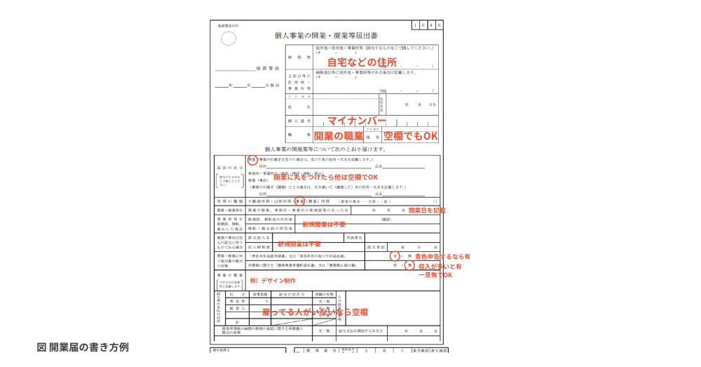 個人事業主として正式に開業するためには、税務署に「個人事業の開業・廃業等届出書」(開業届)を提出します。